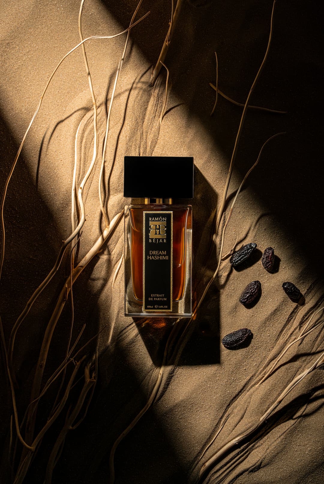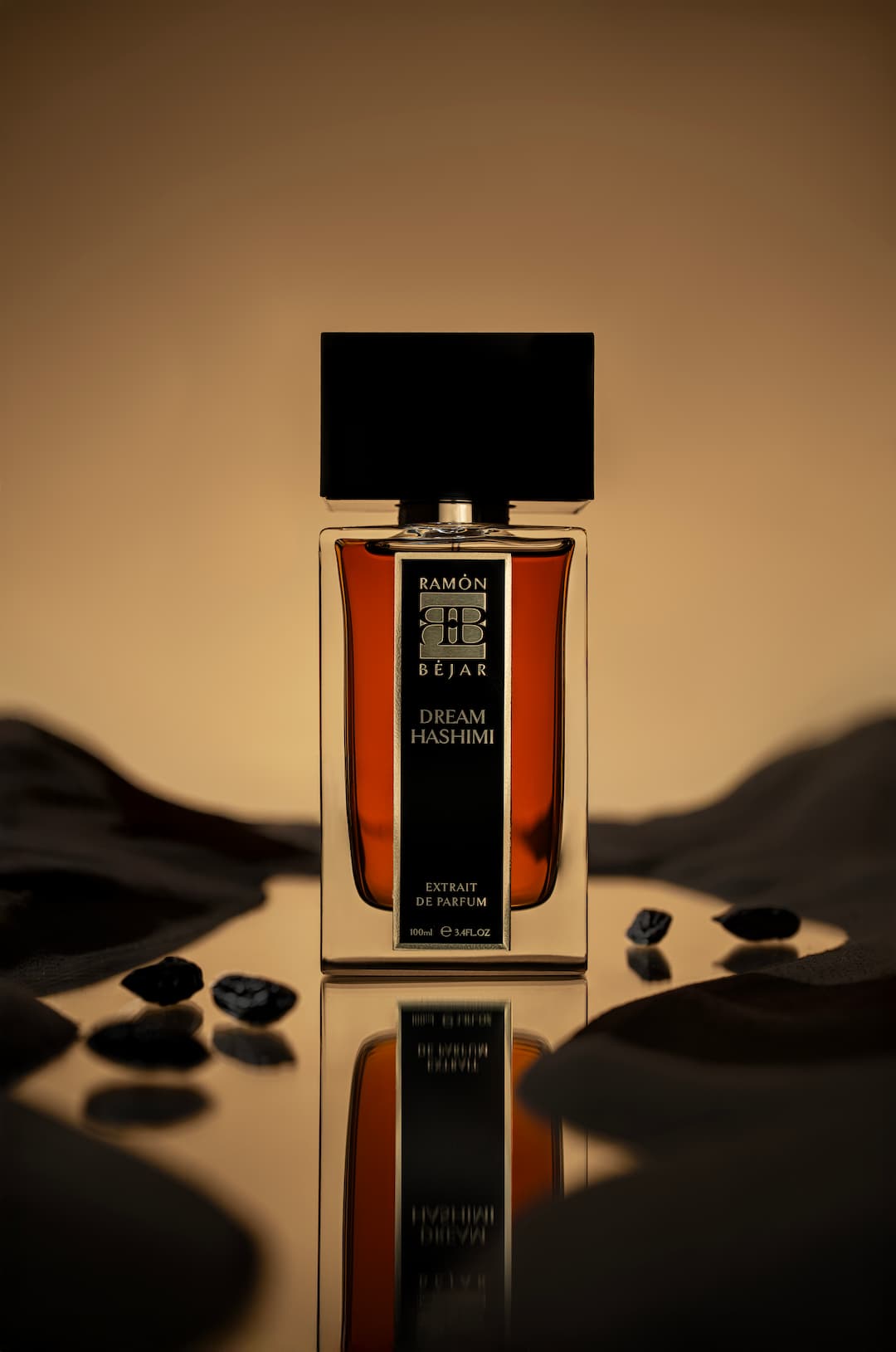 During a trip to Saudi Arabia, Ramón Béjar reconnected with an old friend and was invited to a desert gathering. Around the fire, the conversation turned to his profession as a perfumer. Suddenly, one of those present, a middle-aged man, confessed that he was in love with a Ramón Béjar perfume that was no longer in circulation. The man was so enamored with the fragrance that one night, he dreamt about it. In the dream, a luminous being gave him three seeds to burn and mix with what little of the perfume he had left, creating a unique, eternal fragrance. Inspired by this dream, Ramón crafted Dream Hashimi, a fragrance that embodies this mystical encounter and eternal scent.